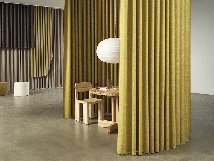Akustikkgardiner er også flotte til å skape soner i et rom. De passer like godt til å dele opp en liten leilighet som til å skjerme møterom i et åpent kontorlandskap, hvor støyreduksjon og visuell avskjerming er avgjørende.