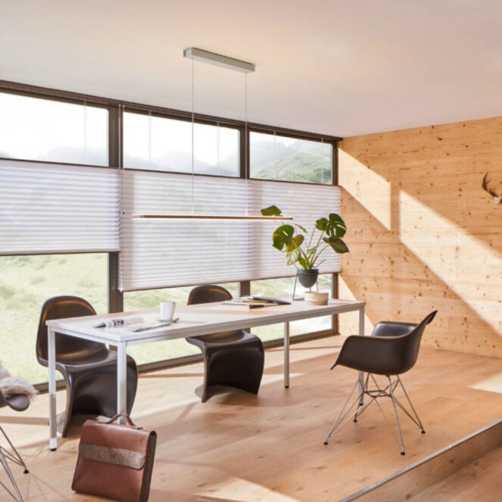 For å oppnå optimal akustikk og estetikk i et rom, kan en kombinasjon av akustikkgardiner, SIGNATURE plissegardiner, akustikkpaneler, bordskjermer og gulvskjermer være den ideelle løsningen. Gardiner bidrar med mykhet og varme, samtidig som de effektivt demper støy fra harde overflater som vinduer og vegger.