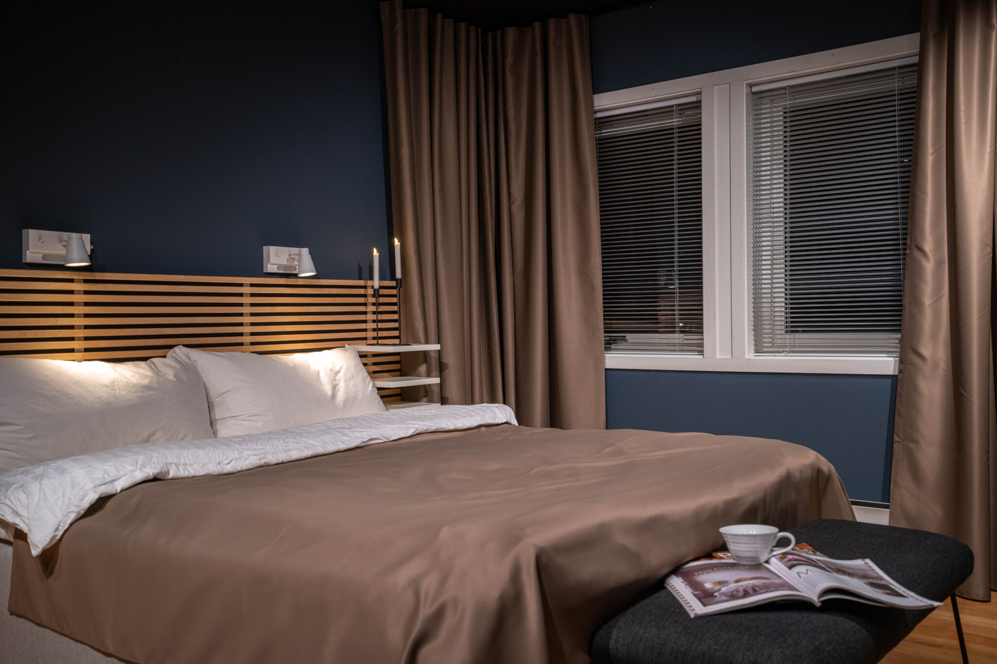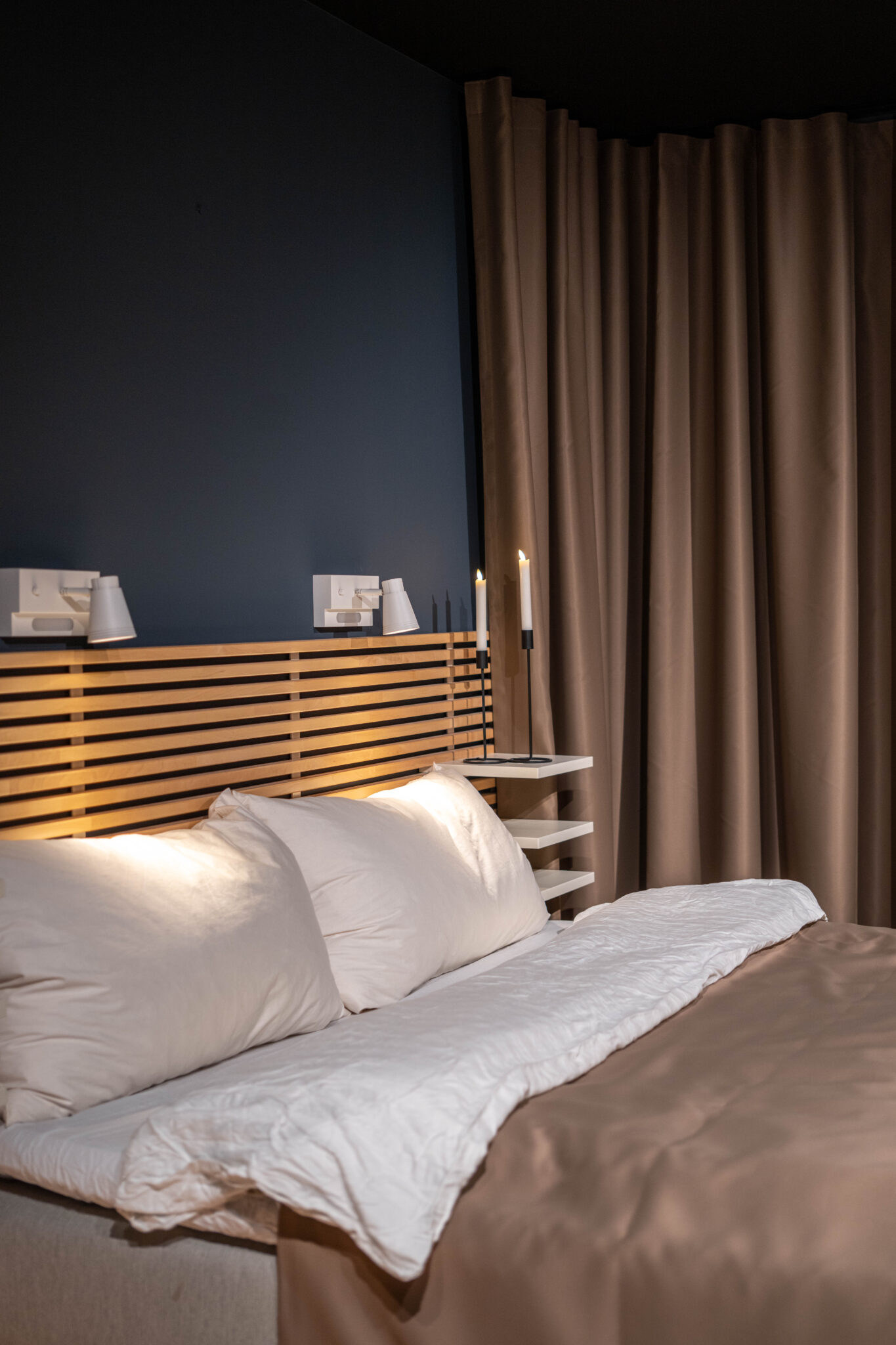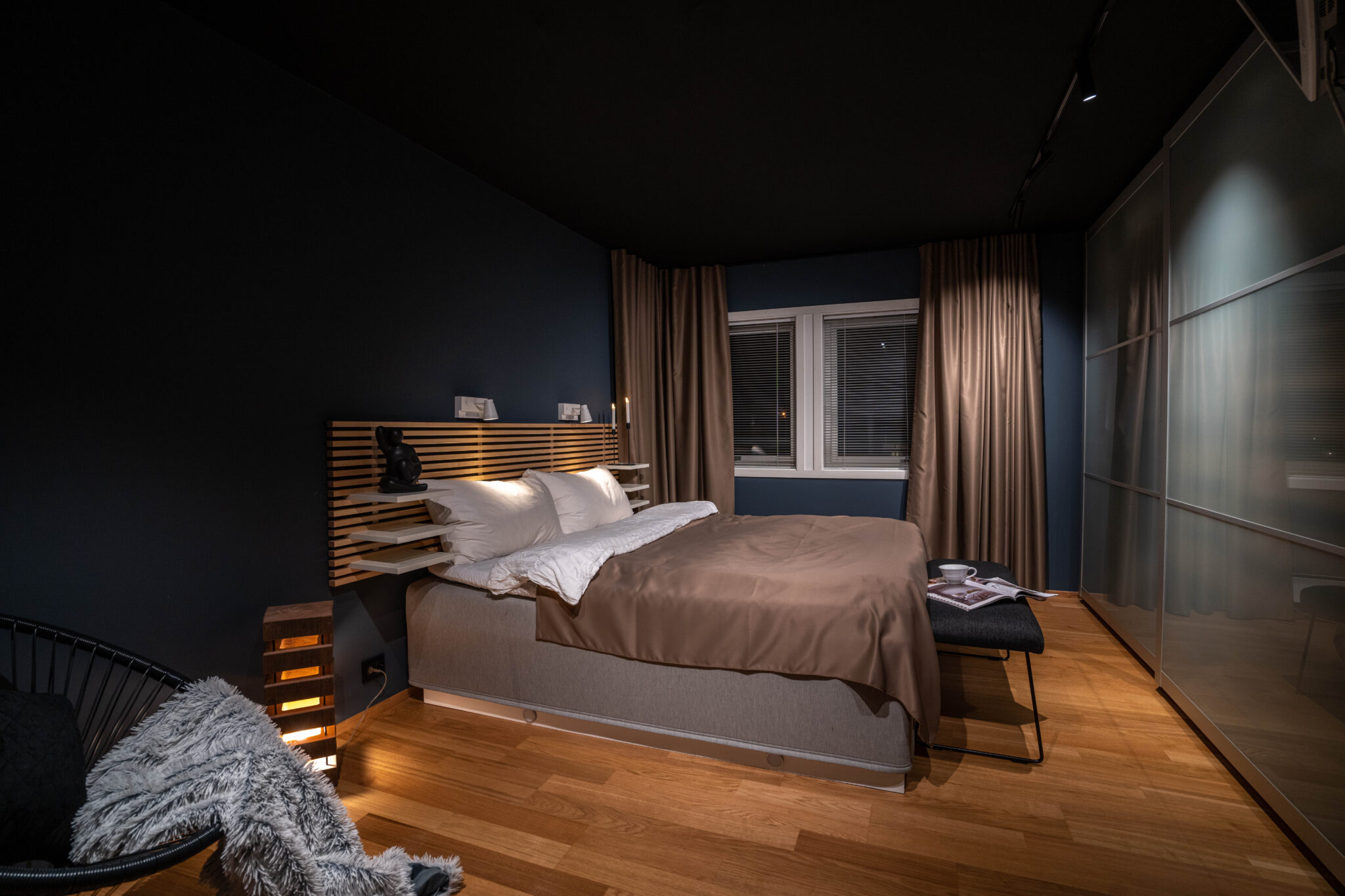 «Bare det å endre farge på gardiner kan endre uttrykket totalt. Digger litt tunge gardiner som når fra tak og helt ned til gulv.», skriver Villaskogvegen på Instagram.
