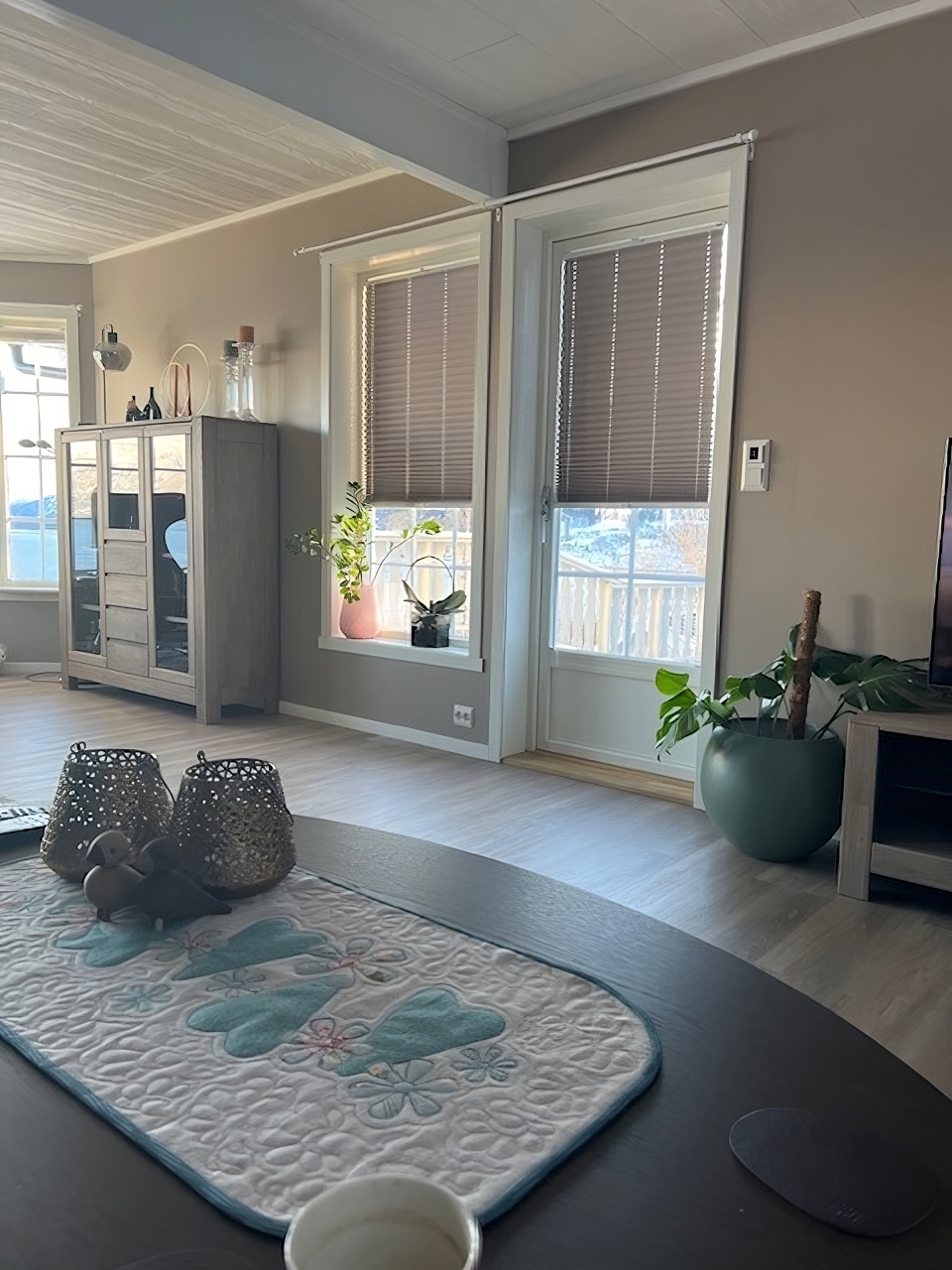 Plisségardin med grepbetjening gjør det enkelt å justere gardinen opp og ned. Derfor er produktet en bestselger hos oss, i tillegg til den høye kvaliteten. Med hvit skinne som sklir elegant inn med den hvite verandadøren, kombinert med en duk som harmonerer perfekt med veggfargen og interiøret, bringer den både funksjon og skjønnhet til hjemmet.