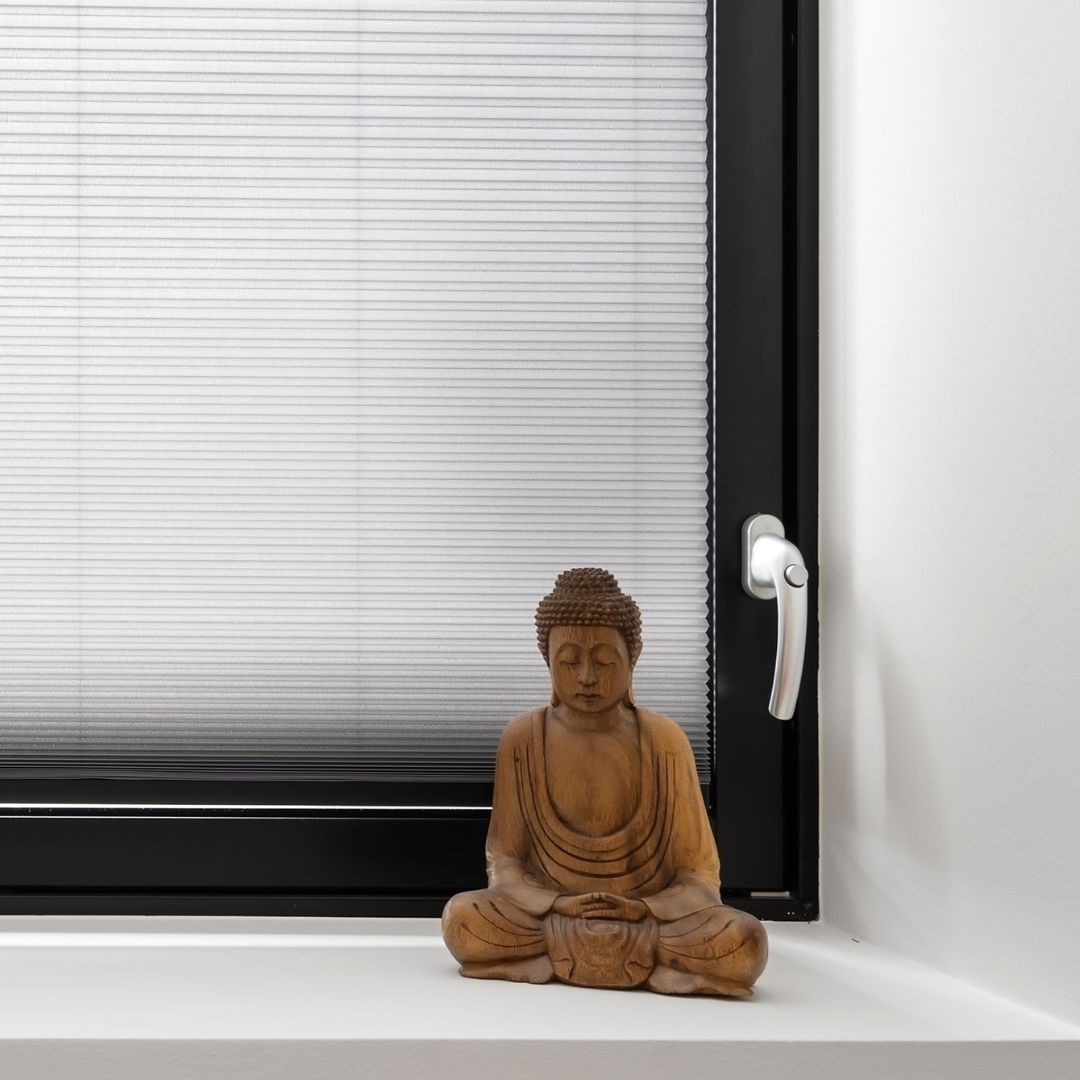 Disse plisségardiner med grepbetjening monteres enkelt på glasset med limlist, og du slipper verktøy og drilling. Den doble duken gir et lekkert uttrykk, isolerer og bidrar til energieffektivitet.