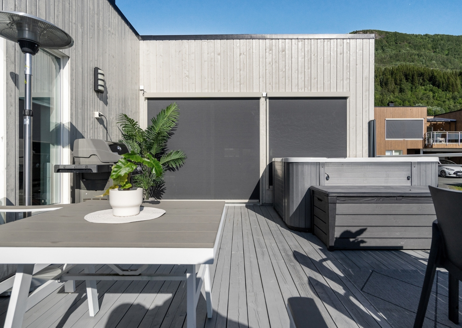 Når detaljer teller, velger du løsninger som både beskytter og fremhever hjemmet ditt. Denne Zipscreen-løsningen – i firkantet design, mørkegrå/sort duk og RAL7032 (stein-grå) – er et perfekt eksempel på hvordan funksjon og arkitektur kan spille på lag. Løsningen glir sømløst inn i fasaden, og kombinerer stram estetikk med maksimal funksjon.