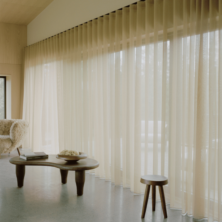Gardin med halvtett tekstil gir mindre lysinnslipp og skjermer i større grad for direkte innsyn. Perfekt til oppholdsrom der man ønsker mindre innsyn, men bevare litt av dagslyset.
