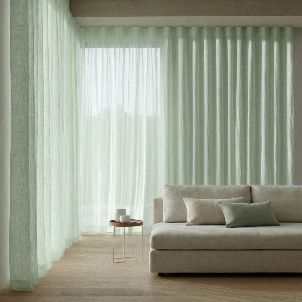 Når man velger gardiner med omhu, kan de være mer enn bare en fryd for øyet. De kan også glede øret, da våre produktmaterialer er designet med ulike akustiske kvaliteter. Samtidig kan de introdusere myke former og taktilitet i ethvert rom, øke privatlivsfølelsen og være et effektivt verktøy for kreativ romdeling.