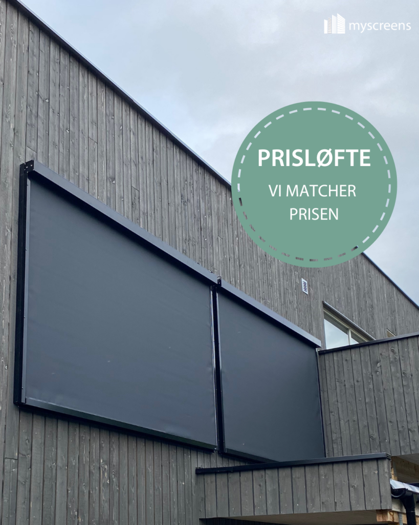 Med Myscreens sitt prisløfte er du alltid sikret den beste prisen på måltilpasset produkter; plissegardiner, rullegardiner, persienner, lamellgardiner og zipscreens. Vi matcher prisen og gir deg + 10% ekstra rabatt på differansen, hvis du finner en identisk vare (samme type, størrelse og kvalitet) billigere hos en annen norsk bedrift eller leverandør som tilbyr måltilpasset solskjerming.